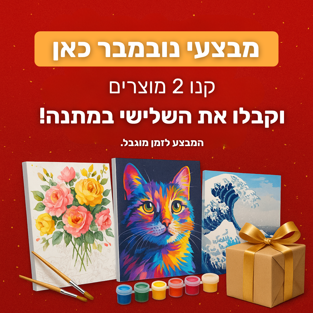 בחרו עכשיו את הציור האהוב עליכם, פתחו את הערכה והתחילו לחוות את הקסם של צביעה לפי מספרים. אין צורך בניסיון קודם – רק להתמסר ליצירה וליהנות מכל רגע!