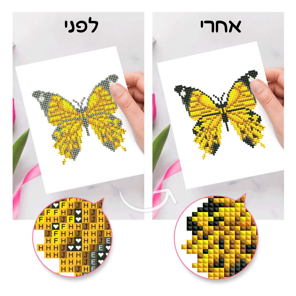 4️⃣ נהנים מהתהליך הממכר והמרגיע, ובסוף מקבלים יצירת אמנות קטנה ונוצצת שאפשר למסגר, לתלות או להעניק כמתנה.